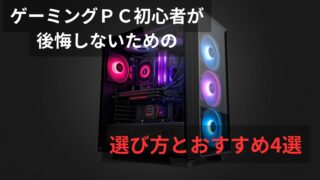 ゲーミング用品 基礎知識 ゲーミングPC初心者が後悔しないための選び方とおすすめ4選 ゲーミングPC初心者が後悔しないための選び方とおすすめ4選当記事はアフィリエイト広告を利用しています。「ゲーミングPCを買いたいけれど、初心者にはどれを選べばいいのかわからない…」そんな悩みを抱えていませんか? 同じゲーミングPCでも価格に... 2025.10.16 ゲーミング用品 基礎知識